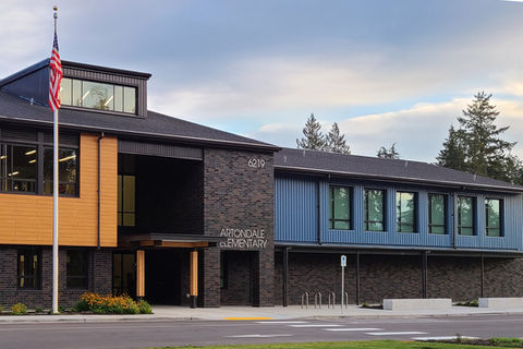 Designed by Integrus and built by LCi, the replacement of Artondale Elementary School occurred on a fully occupied, operational campus. The new school is 77,175 sf, two-story building with 3,822 sf covered play structure, and site improvements including new playfields, parking, and bus/parent drop-off. A challenge that LCi successfully navigated was the electrical utility’s inability to provide sufficient power concurrently to both the existing school and the newly built school. LCi’s solution was to provide generator support and temporary tie-ins to the new school so that systems could be tested and commissioned.